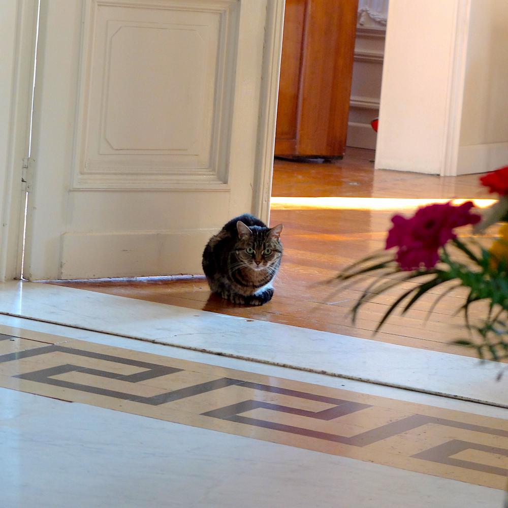 Nos trois chats n'entrent pas dans les chambres mais sont présents à la maison.